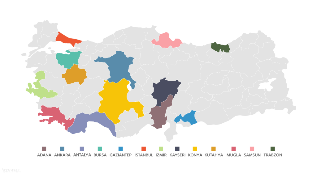 İstanbul’daki genel merkezimizin yanı sıra Adana, Ankara, Antalya, Bursa, İzmir ve Samsun’da yer alan bölge müdürlüklerimiz, Muğla, Kütahya, Konya, Trabzon, Gaziantep ve Kayseri’de bulunan ofislerimiz ve Türkiye’nin 81 iline yayılmış ekiplerimiz ile hizmet sunmaya devam ediyoruz.